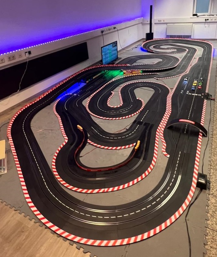 Erlebe puren Rennspaß auf 45 Metern digitaler Rennstrecke!